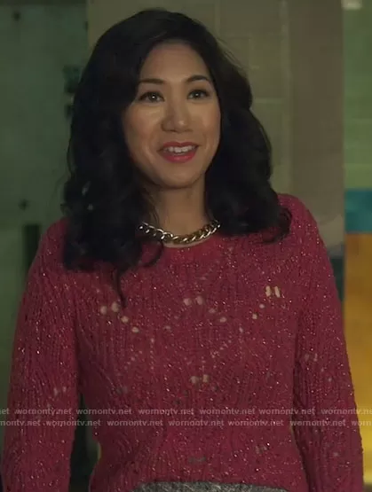 Melody Bayani (played by Liza Lapira) on The Equalizer on CBS was spotted wearing this pink metallic sweater on The Equalizer on episode 'Bout That Life' (2x09) in Jan 2022. Mel's Sweater is the Aryna Sweater by IRO.