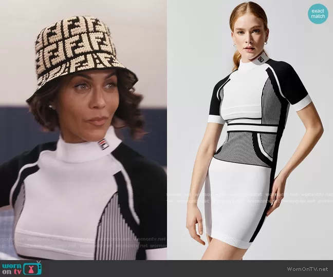 Lisa Todd Wexley (played by Nicole Ari Parker) on And Just Like That on HBO was spotted wearing this white contrast mini dress on And Just Like That on episode 'No Strings Attached' (1x07) in Jan 2022. Lisa's Dress is the Contrast Mini Dress by Fila . Lisa's Hat is the FF motif interwoven bucket hat by Fendi.
