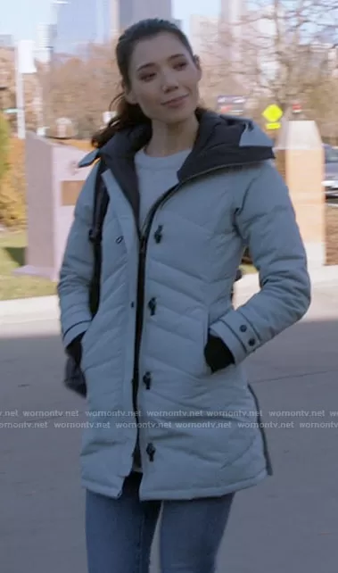 Violet Mikami (played by Hanako Greensmith) on Chicago Fire on NBC was spotted wearing this white puffer jacket on Chicago Fire on episode 'Acting Up' (11x16) in Mar 2023. Violet's Coat is the Lorette Coat by Canada Goose.