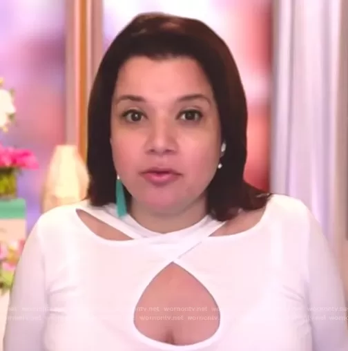 Ana Navarro on The View on ABC was spotted wearing this white cutout top on The View on Jan 14 2022's episode. Ana's Top is the Crossover Cutout Neckline Long Sleeve Top by Eloquii.