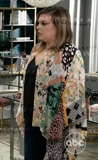 Maxie's choice of the Clea Kimono by Anthropologie, as seen on "General Hospital," serves as a striking reflection of her multifaceted character. This patchwork kimono, with its kaleidoscope of colors and patterns, encapsulates Maxie's sometimes frazzled, yet always vibrant and dynamic, personality. Its mishmash of designs not only adds a burst of energy and creativity to her wardrobe but also subtly mirrors her complex life and emotions. The repeated appearances of this kimono highlight its versatility and Maxie's penchant for bold, statement pieces that defy conventional style norms. It's more than just a fashion item; it's a narrative piece that weaves together different facets of her life, much like the eclectic patterns on the kimono itself. This garment stands as a testament to Maxie's resilience and adaptability, showing how fashion can be a powerful tool for self-expression and storytelling, especially in the ever-twisting plotlines of soap operas.