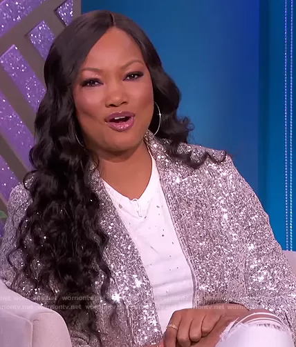 Garcelle Beauvais on The Real on BETher was spotted wearing this silver sequin blazer on The Real on Jan 17 2022's episode. Garcelle's Blazer is the Champagne Sequin Boyfriend Blazer by Express.