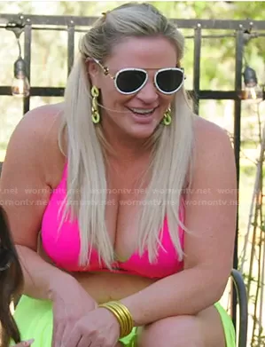 Heather Gay on The Real Housewives of Salt Lake City on Bravo was spotted wearing this white frame aviator sunglasses on The Real Housewives of Salt Lake City on episode 'Who’s Calling Who A Fraud?' (2x17) in Jan 2022. Heather's Sunglasses is the Aviator Sunglasses by Versace.