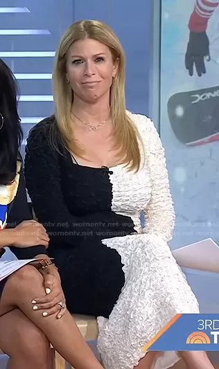 Jill Martin on Today on NBC was spotted wearing this black and whtie two-tone dress on Today on Jan 17 2022's episode. Jill's Dress is the Amy Long Sleeve Dress by Mara Hoffman.