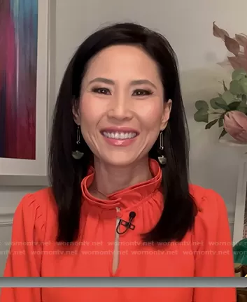 Vicky Nguyen on Today on NBC was spotted wearing this orange ruffle top on Today on Dec 11 2025's episode. Vicky's Top is the Ruffleneck top in 365 by J. Crew.