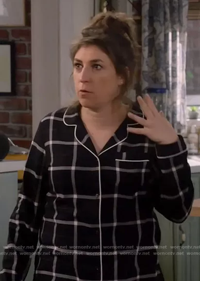 Kat Silver (played by Mayim Bialik) on Call Me Kat on Fox was spotted wearing this black plaid night shirt on Call Me Kat on episode 'Call Me Katzilla' (2x10) in Mar 2022. Kat's Shirt is the Flannel Nightgown by Stars Above at Target.