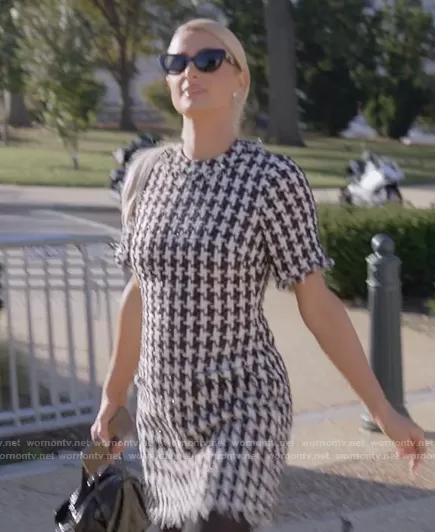 Paris Hilton on Paris in Love on Peacock was spotted wearing this tweed check mini dress on Paris in Love on episode 'Ms. Hilton Goes to Washington' (1x11) in Jan 2022. Paris's Dress is the Sparkle Tweed Dress by Pearl by Lela Rose.