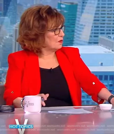Joy Behar on The View on ABC was spotted wearing this red roll sleeve blazer on The View on Jul 20 2022's episode. Joy's Blazer is the Blazer with Rolled up Sleeves by Zara.
