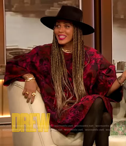 on The Drew Barrymore Show on CBS was spotted wearing this rose bell sleeve dress on The Drew Barrymore Show on Jan 24 2022's episode. 's Dress is the Delko Rose Bell Sleeve Cloque Shift Dress by Dries Van Noten.