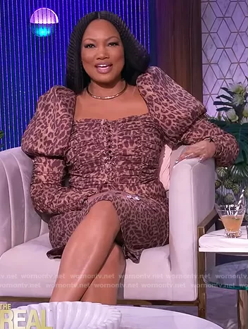 Garcelle Beauvais on The Real on BETher was spotted wearing this leopard print puff sleeve dress on The Real on Jan 24 2022's episode. Garcelle's Dress is the Abana Dress by LPA.
