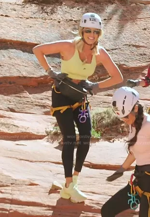 Whitney Rose on The Real Housewives of Salt Lake City on Bravo was spotted wearing this rectangle sunglasses and neon green sneakers on The Real Housewives of Salt Lake City on episode 'Sorrys and Sleepovers' (2x18) in Jan 2022. Whitney's Sunglasses is the Rimless Rectangle Glittered Sunglasses by Miu Miu . Whitney's Shoes is the Air Zoom Superrep Hiit Class Sneakers by Nike.
