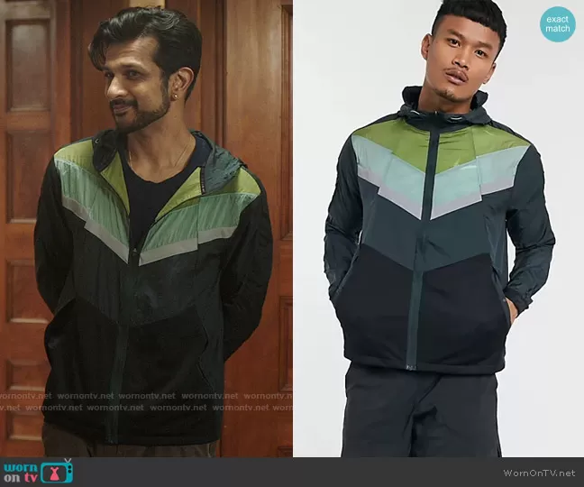 Jay (played by Utkarsh Ambudkar) on Ghosts on CBS was spotted wearing this green colorblock jacket on Ghosts on episode 'Pilot' (1x01) in Oct 2021. Jay's Jacket is the Running Wild Run Retro Track Jacket by Nike.
