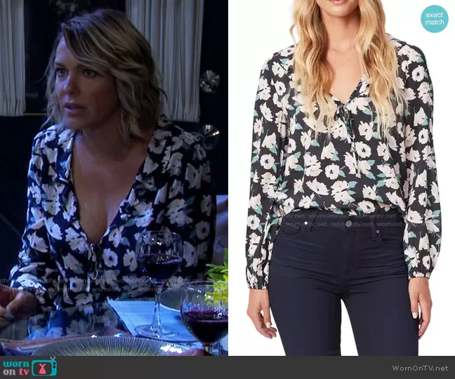 Nicole Walker (played by Arianne Zucker) on Days of our Lives on Peacock was spotted wearing this black floral ruffle blouse on Days of our Lives on Jan 25 2022's episode. Nicole's Top is the Lili Long Sleeve Floral Blouse by Paige.