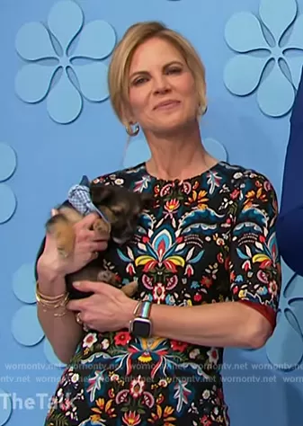 Amanda Kloots on The Talk on CBS was spotted wearing this floral print sheath dress on The Talk on Apr 27 2023's episode. Amanda's Dress is the Delora Dress by Alice + Olivia.