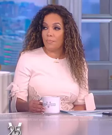 Sunny Hostin on The View on ABC was spotted wearing this white lace inset dress on The View on Jan 26 2022's episode. Sunny's Dress is the Guipure lace and matte-satin midi dress by Proenza Schouler.