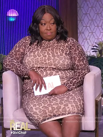 Loni Love on The Real on BETher was spotted wearing this leopard print mesh dress on The Real on Jan 26 2022's episode. Loni's Dress is the Trendy Mesh Bodycon Dress by Nina Parker.