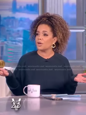 Sunny Hostin on The View on ABC was spotted wearing this teal dolman long sleeve dress on The View on Jan 27 2022's episode. Sunny's Dress is the Dolman-Sleeve Midi Dress in Marine by Victoria Beckham.