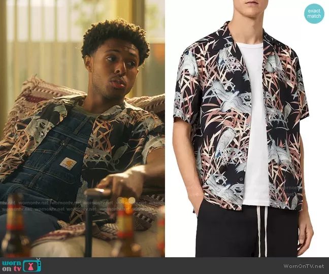Douglas Edwards (played by Diggy Simmons) on Grown-ish on Freeform was spotted wearing this bird print shirt and denim overalls on Grown-ish on episode 'It Was Good Until It Wasn't' (4x10) in Jan 2022. Doug's Shirt is the Siber Shirt by All Saints . Doug's Jumpsuit is the Rugged Flex Relaxed Fit Denim Bib Overall by Carhartt.