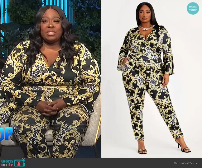 Status Bell Sleeve Skinny Jumpsuit by Ashley Stewart worn by Loni Love on E! News