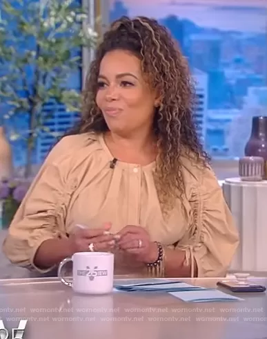 Sunny Hostin on The View on ABC was spotted wearing this khaki ruched sleeve dress on The View on Jan 31 2022's episode. Sunny's Dress is the Puff Sleeves Flared Dress by 3.1 Phillip Lim.