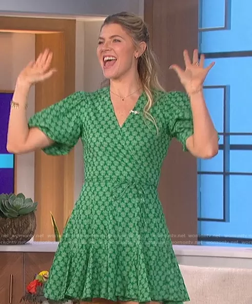 Amanda Kloots on The Talk on CBS was spotted wearing this green printed wrap dress on The Talk on Feb 01 2022's episode. Amanda's Dress is the Claudine Floral Cotton Wrap Dress by Rhode.