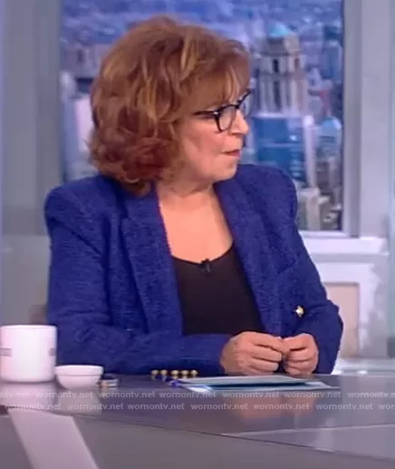 Joy Behar on The View on ABC was spotted wearing this blue double breasted blazer on The View on Feb 02 2022's episode. Joy's Blazer is the Textured Tailored Blazer by Zara.
