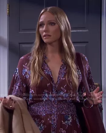 Abigail Deveraux (played by Marci Miller) on Days of our Lives on Peacock was spotted wearing this brown floral shirtdress on Days of our Lives on Feb 21 2022's episode. Abigail's Dress is the Prairie Punk Shirtdress by Free People.