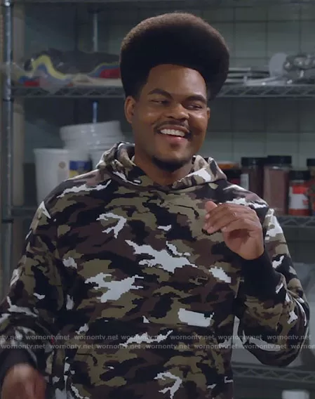 Carter (played by Julian Gant) on Call Me Kat on Fox was spotted wearing this camo hoodie on Call Me Kat on episode 'Call Me Your Biggest Fan' (2x05) in Feb 2022. Carter's Sweatshirt is the Organic Cotton City Camouflage Hoodie by Rag & Bone.