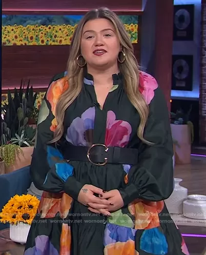 Kelly Clarkson on The Kelly Clarkson Show on NBC was spotted wearing this black floral print keyhole dress on The Kelly Clarkson Show on Mar 07 2022's episode. Kelly's Dress is the Jasmine Flower Dress by Stine Goya.