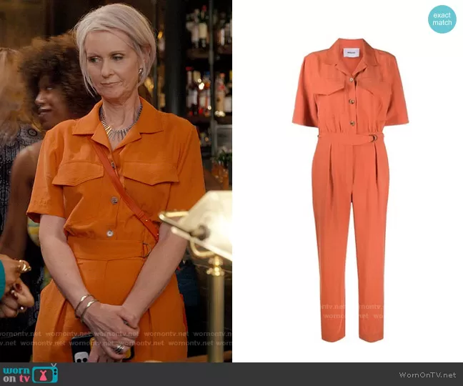 Miranda Hobbs (played by Cynthia Nixon) on And Just Like That on HBO was spotted wearing this orange jumpsuit on And Just Like That on episode 'Some of My Best Friends' (1x04) in Dec 2021. Miranda's Jumpsuit is the Paige Tencel Jumpsuit by Nanushka .