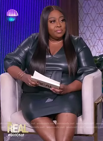 Lantern Sleeve Faux Leather Dress by Eloquii worn by Loni Love on The Real