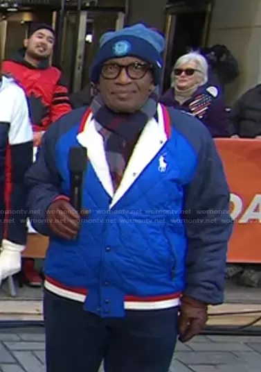 on Today on NBC was spotted wearing this blue padded varsity jacket on Today on Feb 09 2022's episode. 's Jacket is the Team USA Reversible Raglan Varsity Full-Snap Jacket by Ralph Lauren . 's Hat is the Team USA Paralympic Team Pom Beanie by Nike.