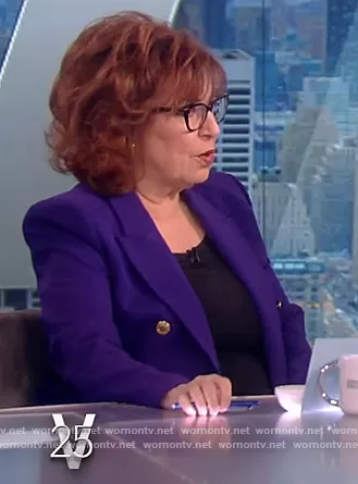 Joy Behar on The View on ABC was spotted wearing this purple double breasted blazer on The View on Jun 14 2022's episode. Joy's Blazer is the Tailored Blazer with Buttons by Zara.