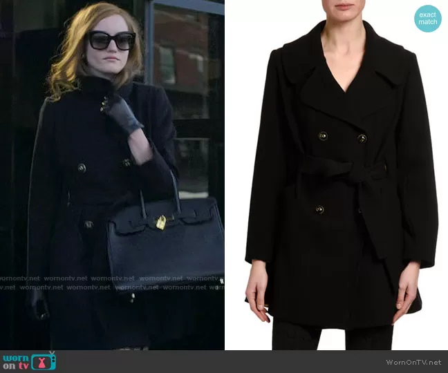Anna Delvey (played by Julia Garner) on Inventing Anna on Netflix was spotted wearing this black coat on Inventing Anna on episode 'Check Out Time' (1x05) in Feb 2022. Anna's Coat is the Belted Double-Face Wool Coat by Dolce & Gabbana.