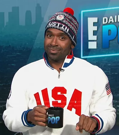 on Today on NBC was spotted wearing this white USA fleece pullover on Today on Feb 16 2022's episode. 's Sweater is the Team USA Pile Pullover Fleece by Ralph Lauren . 's Hat is the Team USA Custom Beanie by Ralph Lauren.
