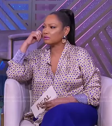 Printed Shirt with Tie by Zara worn by Garcelle Beauvais on The Real