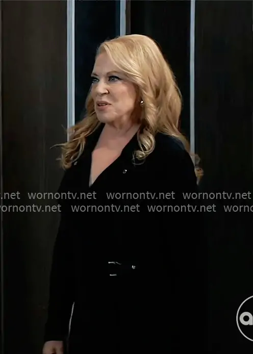 Liesl Obrecht (played by Kathleen Gati) on General Hospital on ABC was spotted wearing this black blazer dress on General Hospital on Oct 16 2025's episode. Liesl's Dress is the Long Sleeve Moto Wrap Short Dress by White House Black Market.