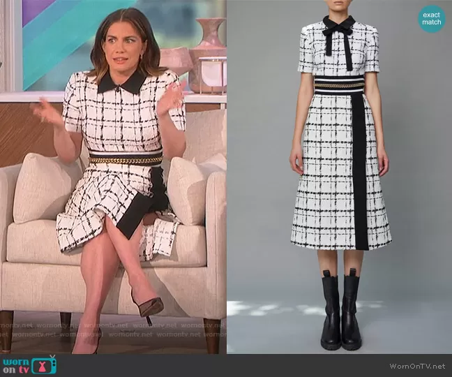 on The Talk on CBS was spotted wearing this white plaid tweed dress on The Talk on Feb 18 2022's episode. 's Dress is the Tweed Midi Dress by Elie Saab.