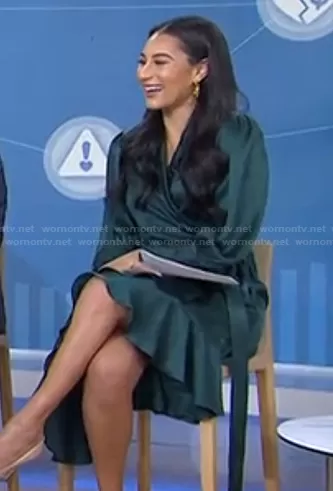 on Today on NBC was spotted wearing this green wrap dress on Today on Feb 22 2022's episode. 's Dress is the Silk Wrap Midi Dress by Zimmermann.