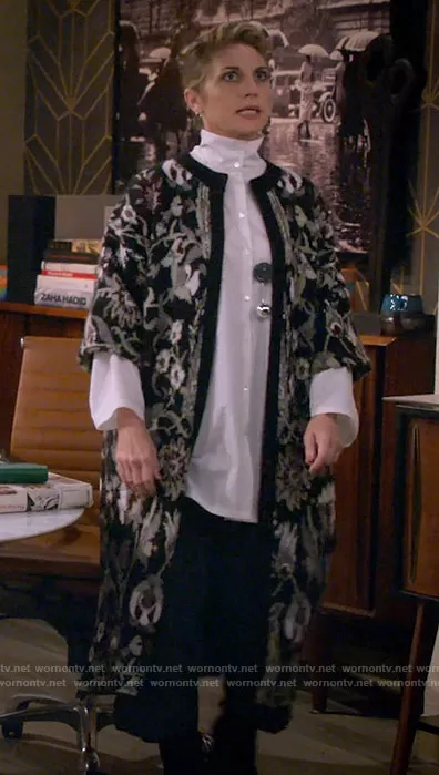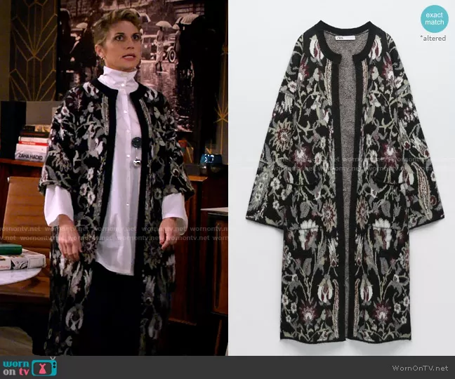 (played by ) on How I Met Your Father on Hulu was spotted wearing this long floral jacket on How I Met Your Father on episode 'The Perfect Shot' (1x07) in Feb 2022. 's Jacket is the Jacquard Floral Knit Coat by Zara .