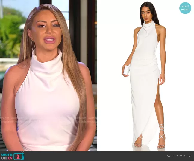 Larsa Pippen (played by Larsa Pippen) on The Real Housewives of Miami on Peacock was spotted wearing this white sleeveless high neck dress on The Real Housewives of Miami on episode 'Painted With Pride' (4x03) in Dec 2021. Larsa's Dress is the Samba Gown by Amanda Uprichard.