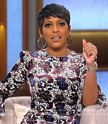 Tamron Hall on Tamron Hall Show on ABC was spotted wearing this floral print bell sleeve dress on Tamron Hall Show on Feb 24 2022's episode. Tamron's Dress is the The Falconetti Dress by The Vampires Wife.
