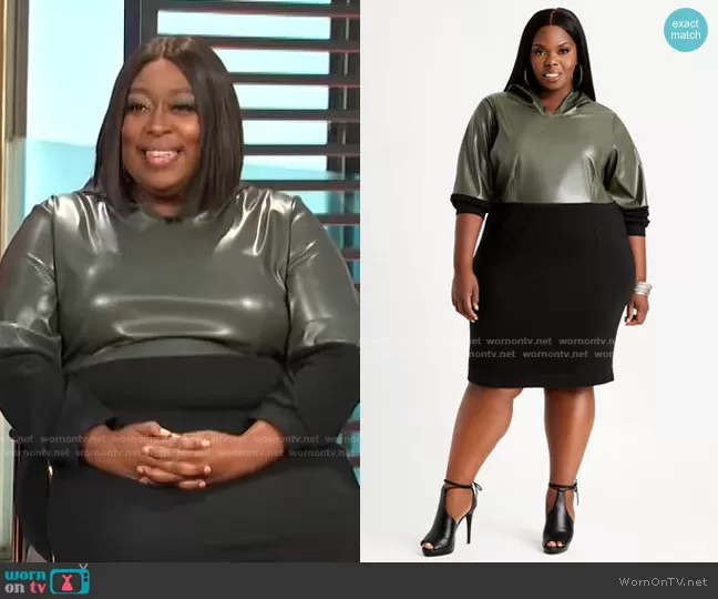 Colorblock Faux Leather Hoodie Dress by Ashley Stewart worn by Loni Love on E! News