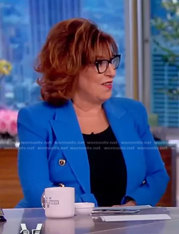 Joy Behar on The View on ABC was spotted wearing this blue double breasted blazer on The View on Mar 31 2022's episode. Joy's Blazer is the Tailored Double Breasted Blazer by Zara.