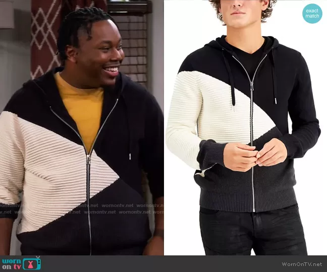 Marty (played by Marcel Spears) on The Neighborhood on CBS was spotted wearing this black and white colorblock hoodie on The Neighborhood on episode 'Welcome to the Stakeout' (4x13) in Feb 2022. Marty's Sweater is the Colorblocked Hooded Sweater by INC International Concepts.