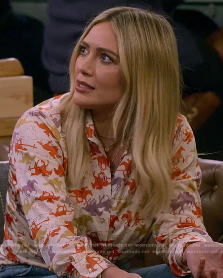 Vintage Horse Print Button Up Top worn by Sophie (Hilary Duff) on How I Met Your Father