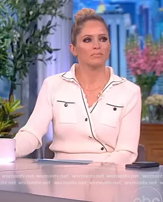 Sara Haines on The View on ABC was spotted wearing this white asymmetric polo dress on The View on Mar 01 2022's episode. Sara's Dress is the Ribbed-knit midi dress by Self Portrait.