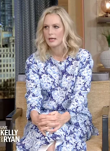 on Live with Kelly and Mark on Disney ABC Home Entertainment was spotted wearing this blue floral top and skirt on Live with Kelly and Ryan on Aug 25 2022's episode. 's Top is the Spright Top by Rachel Comey . 's Skirt is the Glass Skirt by Rachel Comey.