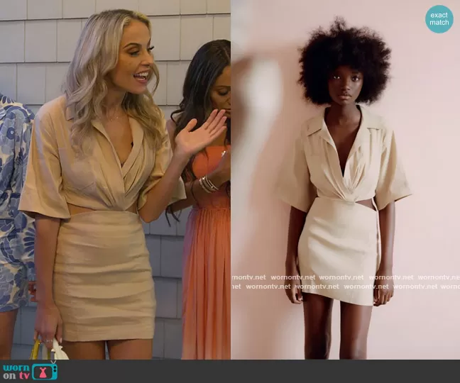 on The Real Housewives of New Jersey on Bravo was spotted wearing this khaki cutout mini dress on The Real Housewives of New Jersey on episode 'Jersey Shore Showdown' (12x05) in Mar 2022. 's Dress is the Khaki Cutout Dress by Zara . 's Shoes is the FF Stripe Low Top Sneakers by Fendi.