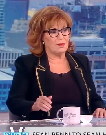 Joy Behar on The View on ABC was spotted wearing this black blazer with gold contrast trim on The View on Jul 25 2022's episode. Joy's Jacket is the Contrast Trim Double Breasted Blazer by Zara.